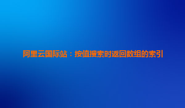阿里云國(guó)際站:高效按值搜索索引的智能實(shí)踐