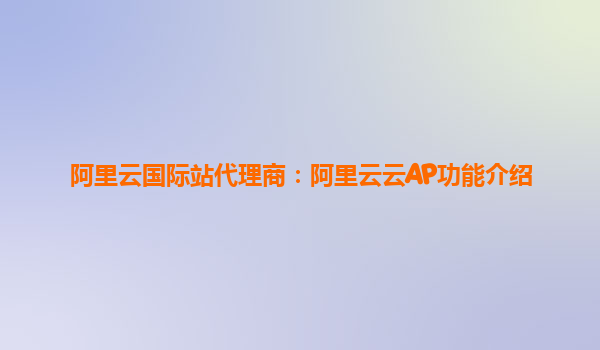 阿里云國(guó)際站代理商:阿里云云AP功能介紹