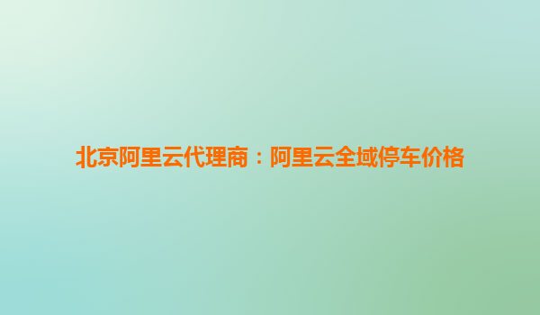 北京阿里云代理商解析:阿里云全域停車價(jià)格與核心優(yōu)勢(shì)