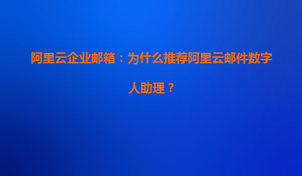 阿里云企業(yè)郵箱:為什么推薦阿里云郵件數(shù)字人助理?