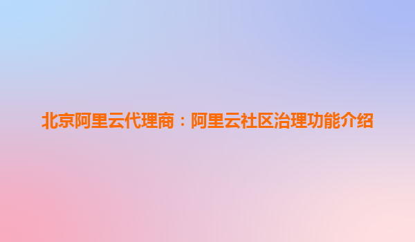 北京阿里云代理商:阿里云社區(qū)治理功能介紹