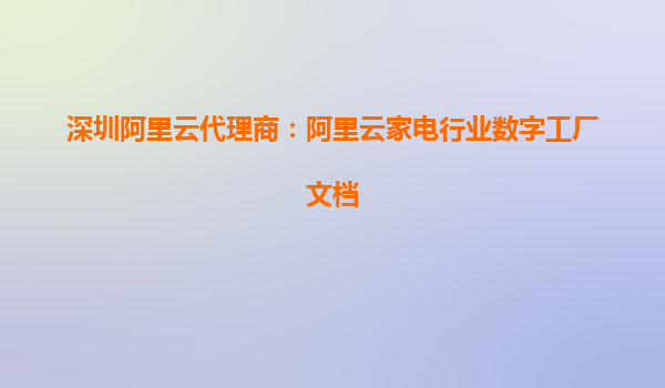 深圳阿里云代理商:阿里云家電行業(yè)數(shù)字工廠(chǎng)解決方案