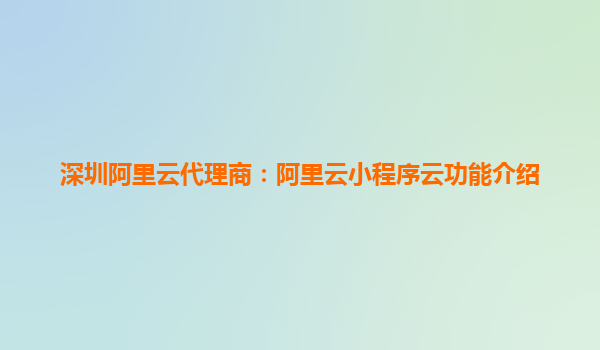 深圳阿里云代理商:阿里云小程序云功能介紹