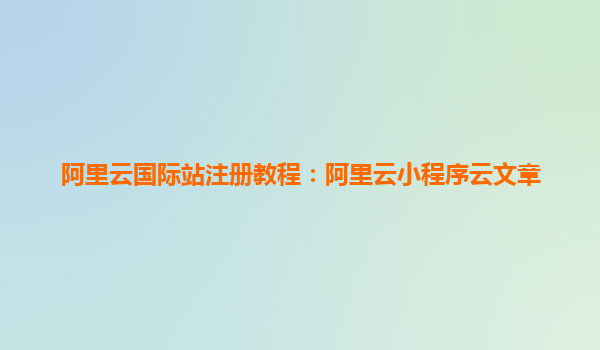 阿里云國際站注冊教程:阿里云小程序云完整指南