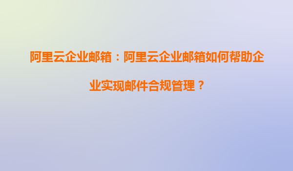 阿里云企業(yè)郵箱:如何幫助企業(yè)實現(xiàn)郵件合規(guī)管理?