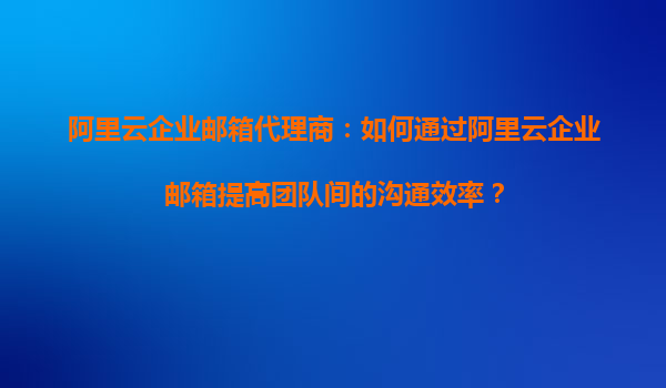 阿里云企業(yè)郵箱代理商:如何通過阿里云企業(yè)郵箱提高團隊間的溝通效率?