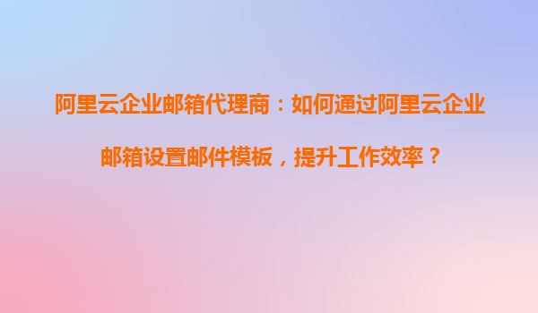 阿里云企業(yè)郵箱代理商:如何通過阿里云企業(yè)郵箱設(shè)置郵件模板,提升工作效率?