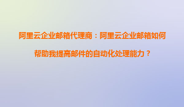 阿里云企業(yè)郵箱代理商:阿里云企業(yè)郵箱如何幫助我提高郵件的自動(dòng)化處理能力?