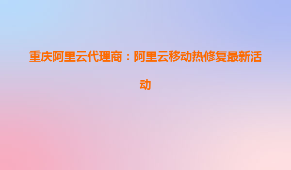 重慶阿里云代理商:阿里云移動熱修復(fù)最新活動
