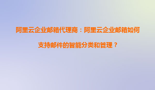 阿里云企業(yè)郵箱代理商:阿里云企業(yè)郵箱如何支持郵件的智能分類和管理?