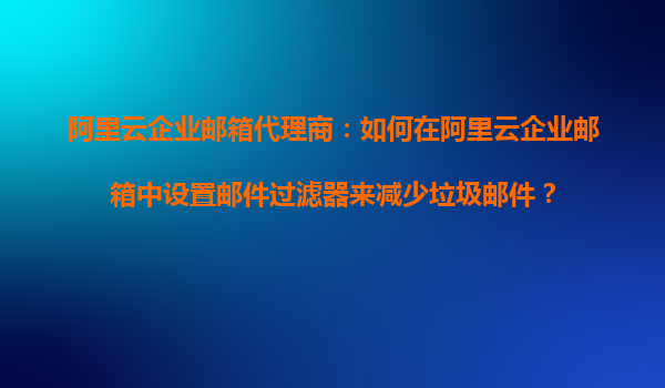 阿里云企業(yè)郵箱代理商:如何在阿里云企業(yè)郵箱中設(shè)置郵件過濾器來減少垃圾郵件?