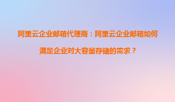阿里云企業(yè)郵箱代理商:阿里云企業(yè)郵箱如何滿足企業(yè)對(duì)大容量存儲(chǔ)的需求?