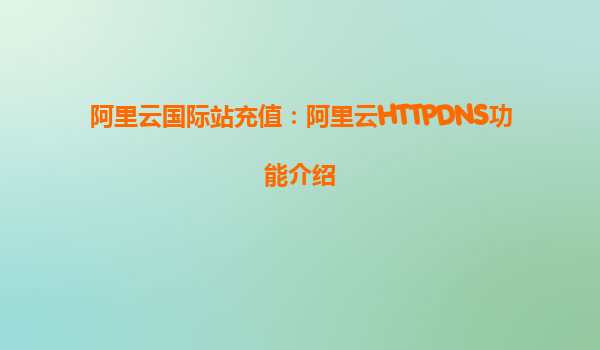 阿里云國際站充值:阿里云HTTPDNS功能介紹