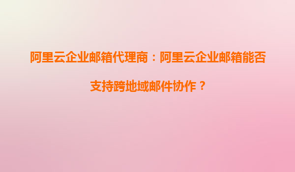 阿里云企業(yè)郵箱:高效安全的跨地域郵件協(xié)作解決方案