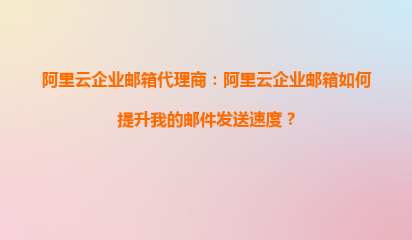 阿里云企業(yè)郵箱代理商:阿里云企業(yè)郵箱如何提升我的郵件發(fā)送速度?