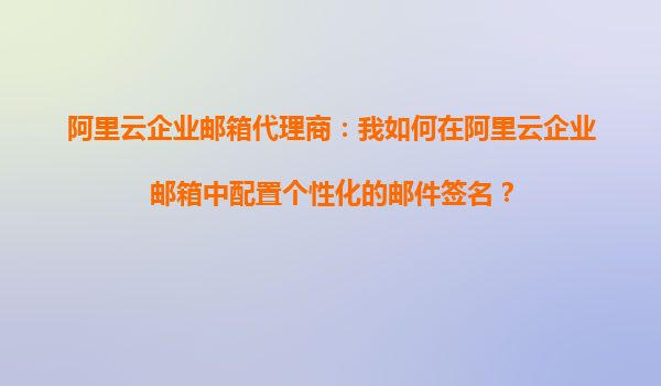 阿里云企業(yè)郵箱代理商:如何在阿里云企業(yè)郵箱中配置個(gè)性化的郵件簽名?