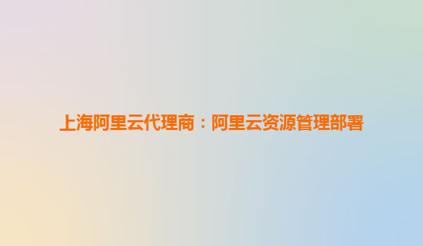上海阿里云代理商:阿里云資源管理部署的優(yōu)勢與實(shí)踐