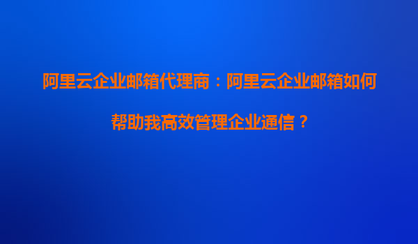 阿里云企業(yè)郵箱代理商:阿里云企業(yè)郵箱如何幫助我高效管理企業(yè)通信?