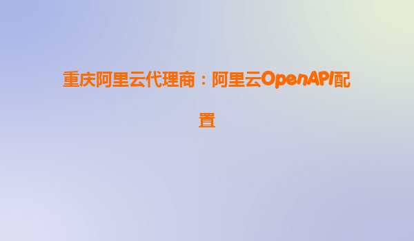 重慶阿里云代理商:阿里云OpenAPI配置詳解與優(yōu)勢分析