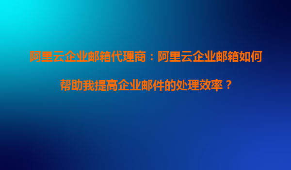 阿里云企業(yè)郵箱代理商:阿里云企業(yè)郵箱如何幫助我提高企業(yè)郵件的處理效率?