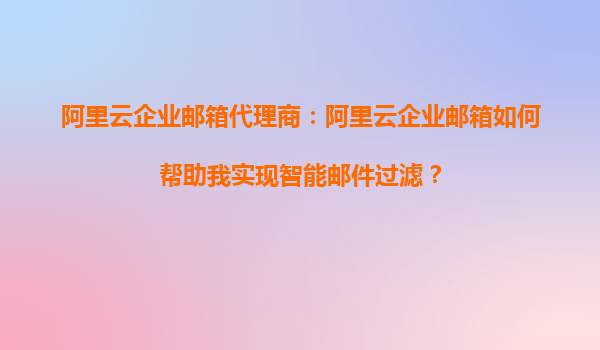 阿里云企業(yè)郵箱代理商:阿里云企業(yè)郵箱如何幫助我實(shí)現(xiàn)智能郵件過濾?