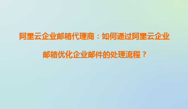 阿里云企業(yè)郵箱代理商:如何通過阿里云企業(yè)郵箱優(yōu)化企業(yè)郵件的處理流程?