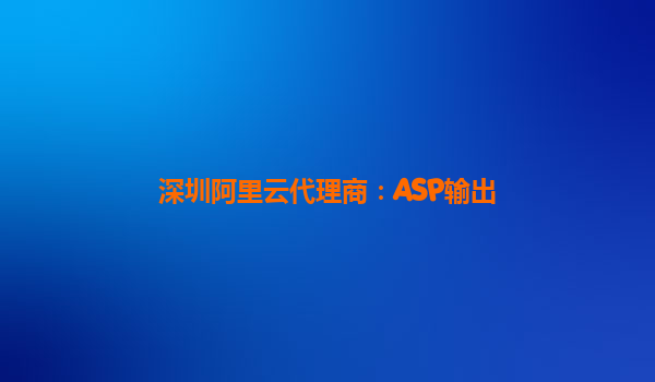 深圳阿里云代理商:ASP輸出的優(yōu)勢與應用分析