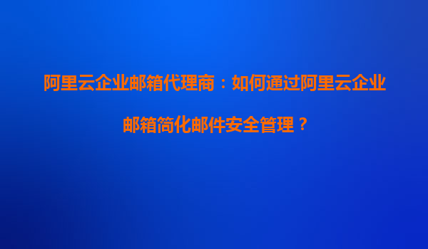 阿里云企業(yè)郵箱代理商:如何通過(guò)阿里云企業(yè)郵箱簡(jiǎn)化郵件安全管理?