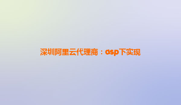 深圳阿里云代理商:ASP下實(shí)現(xiàn)阿里云服務(wù)的優(yōu)勢(shì)與應(yīng)用