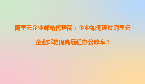 阿里云企業(yè)郵箱代理商:企業(yè)如何通過阿里云企業(yè)郵箱提高遠(yuǎn)程辦公效率?