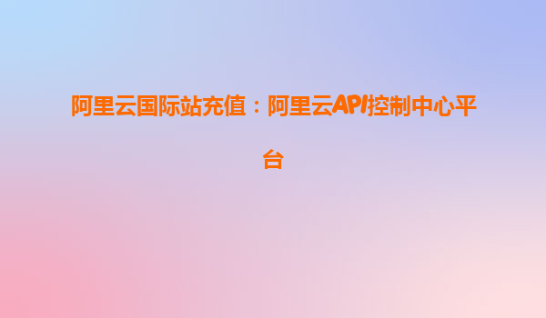 阿里云國際站充值:接入全球領先的阿里云API控制中心平臺