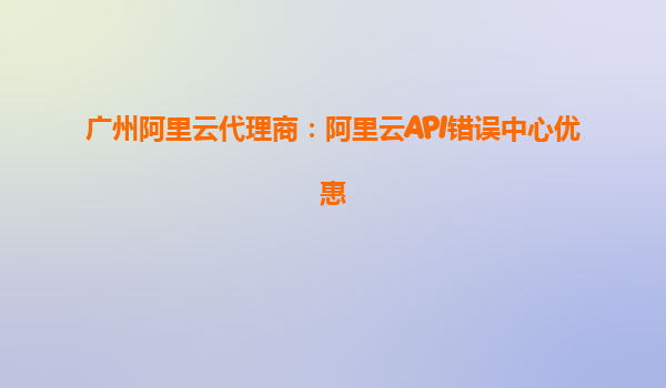 廣州阿里云代理商:阿里云API錯(cuò)誤中心優(yōu)惠