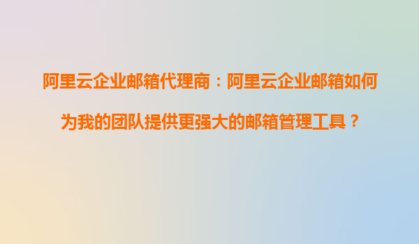 阿里云企業(yè)郵箱代理商:阿里云企業(yè)郵箱如何為我的團隊提供更強大的郵箱管理工具?