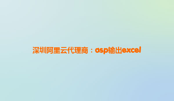 深圳阿里云代理商ASP輸出Excel解決方案的優(yōu)勢
