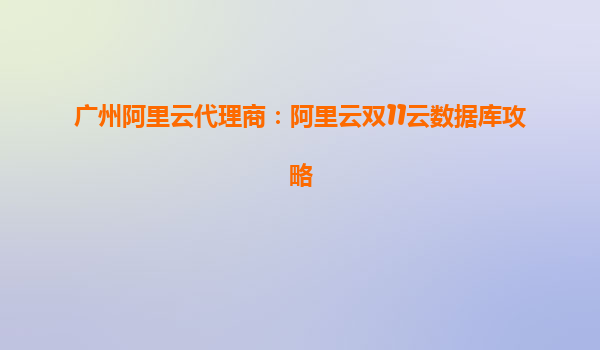 廣州阿里云代理商:阿里云雙11云數(shù)據(jù)庫攻略