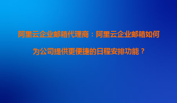 阿里云企業(yè)郵箱代理商:阿里云企業(yè)郵箱如何為公司提供更便捷的日程安排功能?
