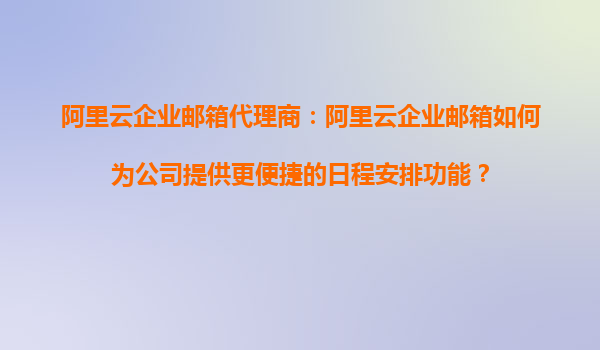 阿里云企業(yè)郵箱代理商:阿里云企業(yè)郵箱如何為公司提供更便捷的日程安排功能?