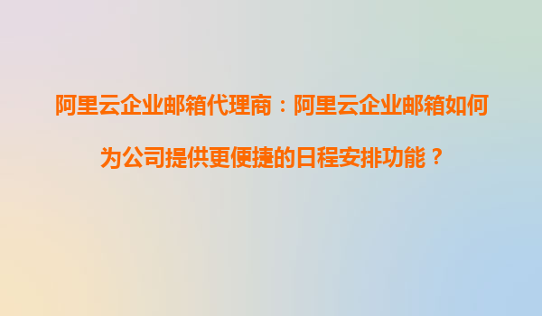 阿里云企業(yè)郵箱代理商:阿里云企業(yè)郵箱如何為公司提供更便捷的日程安排功能?