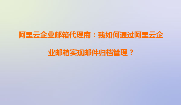 阿里云企業(yè)郵箱代理商:如何通過(guò)阿里云企業(yè)郵箱實(shí)現(xiàn)郵件歸檔管理