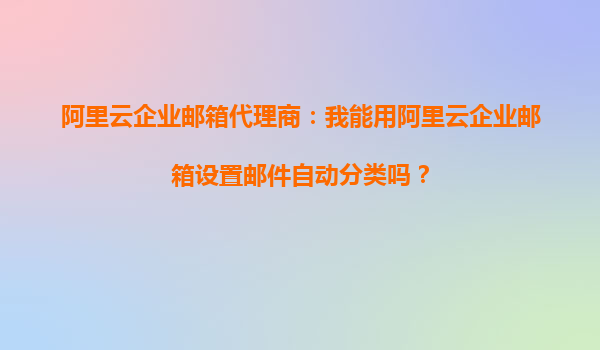 利用阿里云企業(yè)郵箱實現(xiàn)郵件自動分類,提升企業(yè)辦公效率