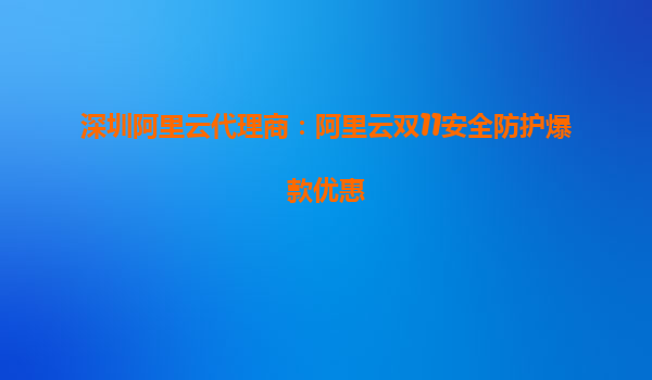 深圳阿里云代理商特別企劃:雙11安全防護(hù)爆款優(yōu)惠來襲