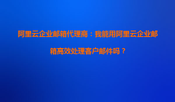 阿里云企業(yè)郵箱代理商:我能用阿里云企業(yè)郵箱高效處理客戶郵件嗎?