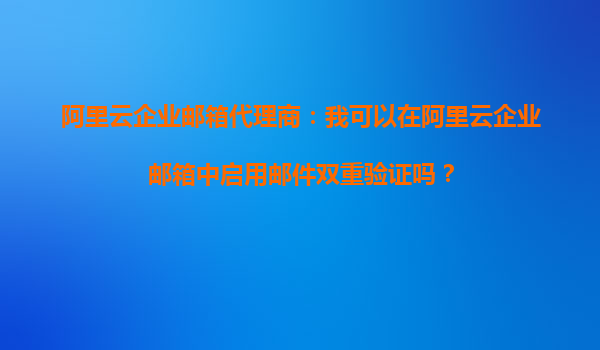 阿里云企業(yè)郵箱代理商:我可以在阿里云企業(yè)郵箱中啟用郵件雙重驗證嗎?