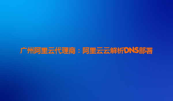 廣州阿里云代理商:阿里云云解析DNS部署詳解