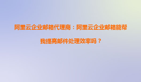 阿里云企業(yè)郵箱代理商:阿里云企業(yè)郵箱能幫我提高郵件處理效率嗎?