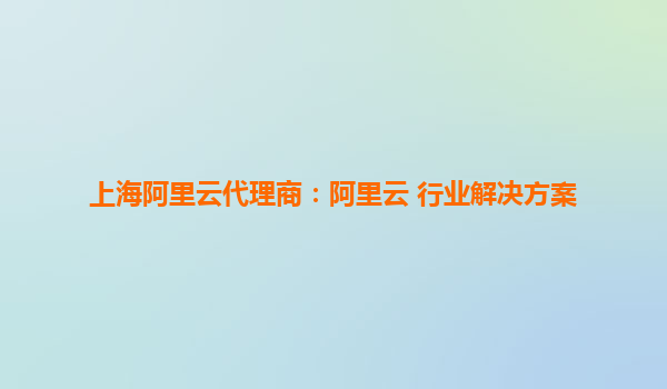 上海阿里云代理商:阿里云行業(yè)解決方案