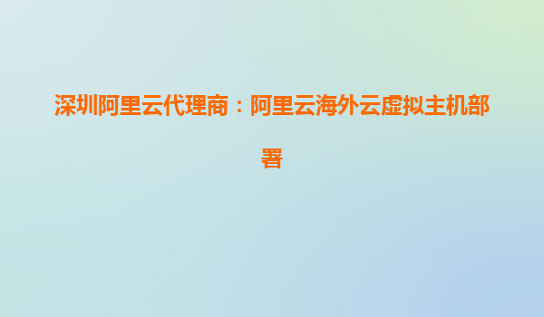 深圳阿里云代理商:阿里云海外云虛擬主機部署優(yōu)勢解析