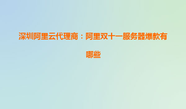 深圳阿里云代理商:阿里雙十一服務(wù)器爆款推薦