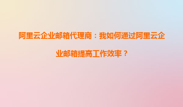 阿里云企業(yè)郵箱代理商:如何通過(guò)阿里云企業(yè)郵箱提高工作效率?