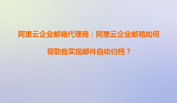 阿里云企業(yè)郵箱代理商:阿里云企業(yè)郵箱如何幫助我實(shí)現(xiàn)郵件自動(dòng)歸檔?
